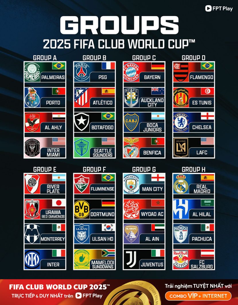 🔥 FIFA Club World Cup 2025™ chính thức khởi tranh từ 15/06/2025, mang đến một mùa hè rực lửa với những màn đối đầu đỉnh cao giữa 32 CLB hàng đầu thế giới. Hàng loạt siêu sao như Mbappé, Haaland, Vini Jr, Kane, Lautaro Martínez… sẽ cùng hội tụ trong giải đấu danh giá nhất hành tinh cấp CLB.