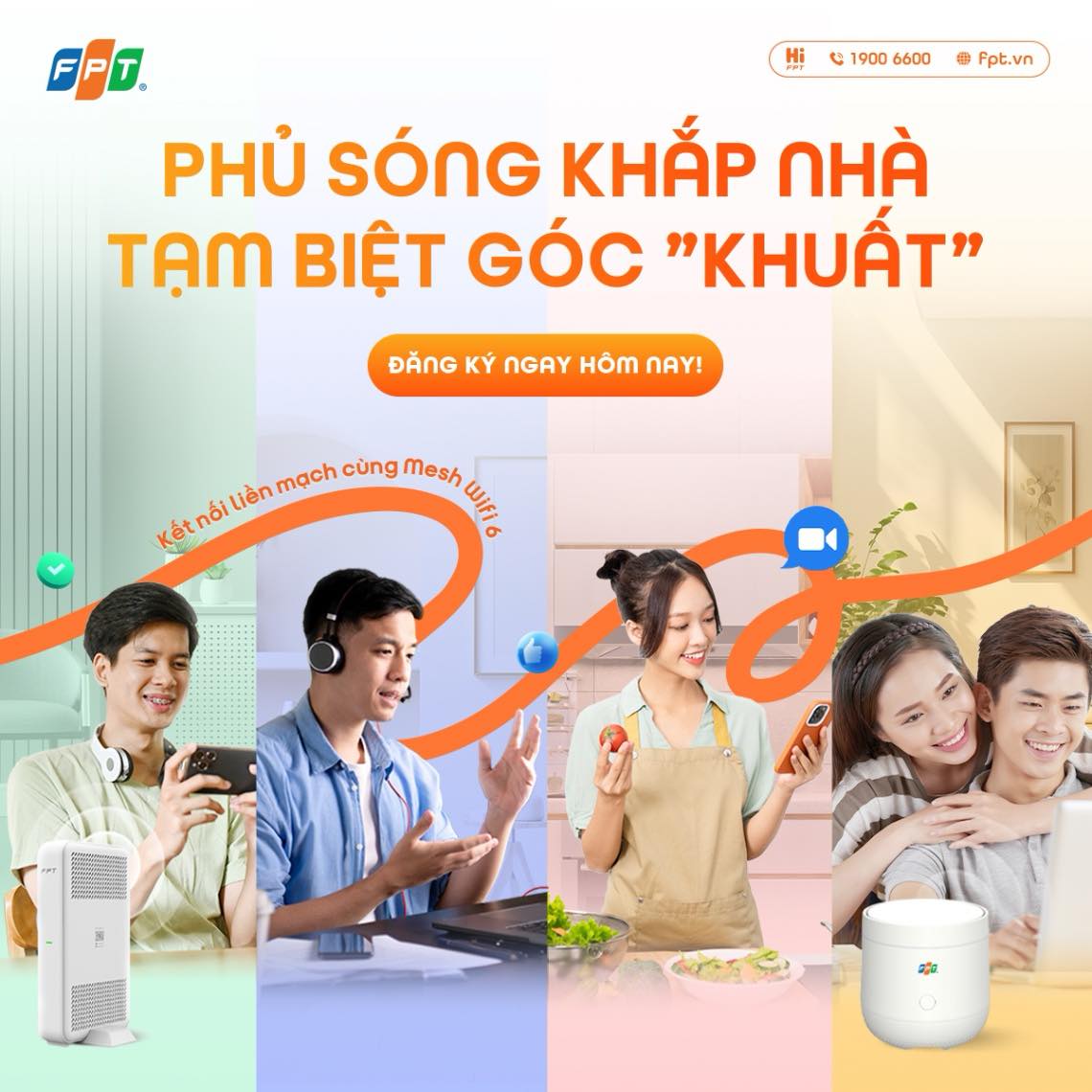 - Miễn phí thiết bị Mesh Wifi 6 khi đăng ký các gói Internet Sky-Giga-Meta của FPT.